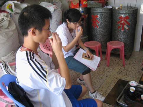 本网讯 2010年7月24日上午,经贸学院保险系“织梦者”三下乡队再次走入了梅州丰顺县潘田镇寻常百姓家,围绕“潘田镇茶叶产业的供销情况”这个主题,针对当地的茶庄茶店展开了调研。