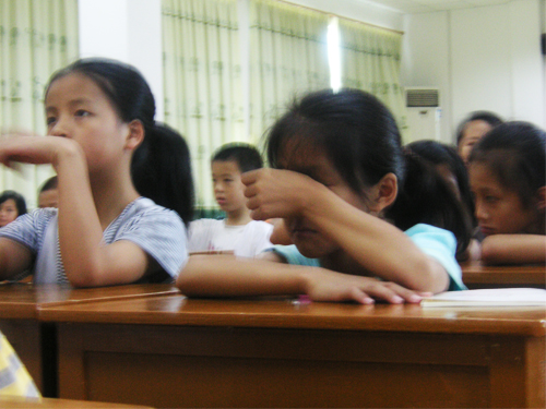 之后,另一位班主任大毅以简短的开场白告诉学生们不要因为父母一时对自己的责备就对父母不满,因为那都是爸爸妈妈对我们的爱。他让小朋友们把纸笔拿出来,写下自己想对爸爸妈妈说的话,并作为给父母的礼物带回家送给他们。虽然小学生们很多字都不会写,但是他们有的用拼音代替,有的举手问老师,都尽自己最大的努力写好这张小纸条。