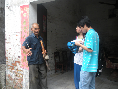 经过一番曲折的路程,调研组队员总算找到了赵家祠,并受到赵家祠主任赵承华老先生的热情接待。队员们针对原先对赵家祠的资料了解向赵承华提出了一系列富有针对性的问题,例如对赵家祠建设成旅游风景区后对其自身建筑构造的影响和破坏是否有相关的防护措施?赵家祠周边的现代建筑是否影响到赵家祠的形象,对其进行拆除是否合情合理等。赵承华对队员们提出的问题都作出了耐心的回答。