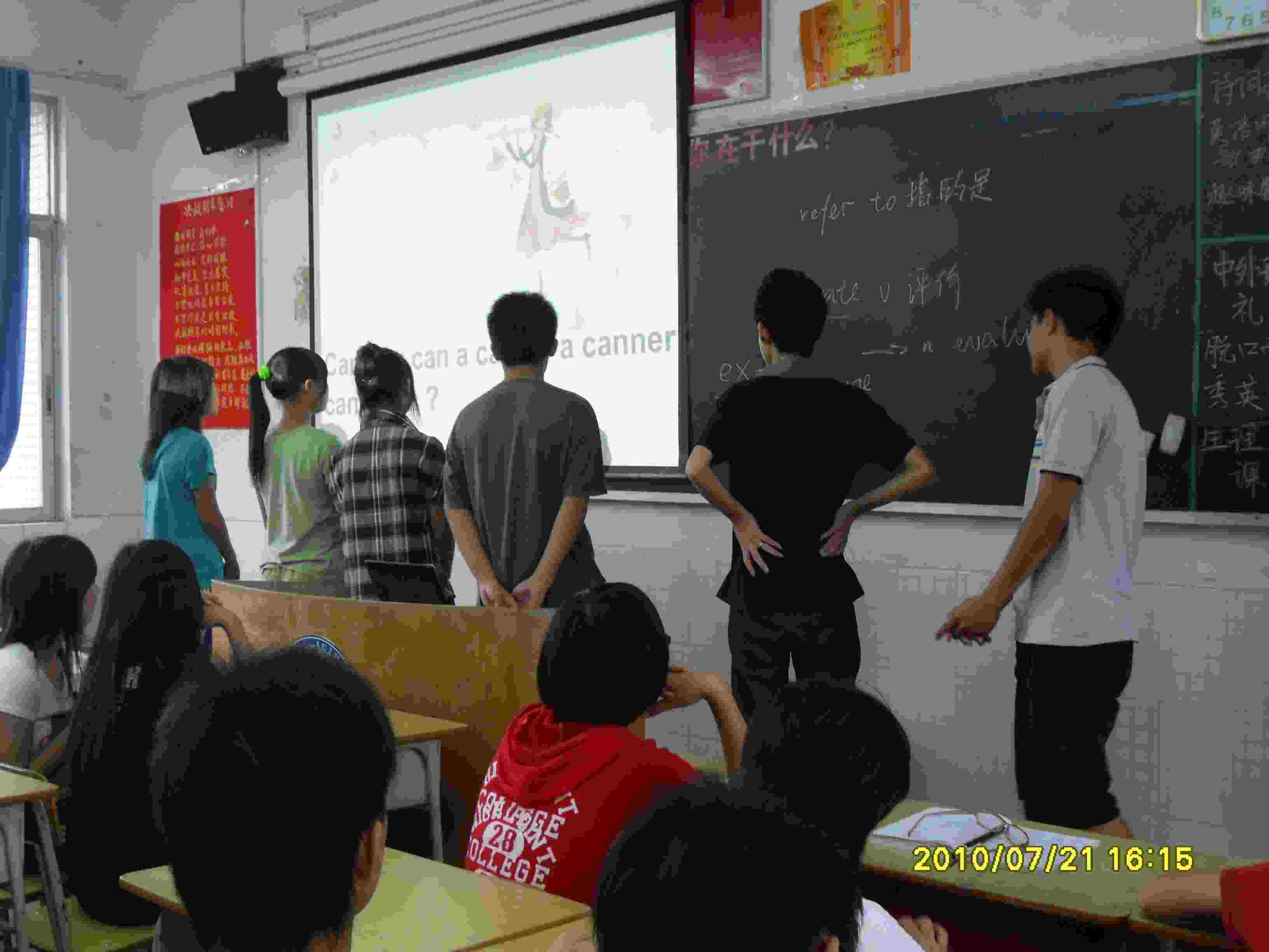 本网讯 7月23日,在到达云安中学四天之后,心之源队伍的义教工作就紧锣密鼓的展开了。看着孩子们渴望和热切的眼神,我们被他们对于英语的热情所深深地打动了,同时也感到自己肩上担子的重量。这些孩子们渴望能够从我们这里得到一些关于英语学习的有效方法和宝贵经验,但是,他们缺少很多开口说英语的机会。因为他们惧怕错误,没有勇气站在全班同学的面前展示自己,于是,我们决定采取鼓励的措施给他们张口说英语的勇气,让他们在以后的英语学习中多运用大声朗读这个有效地方法,抱着更大的兴趣来学习英语。