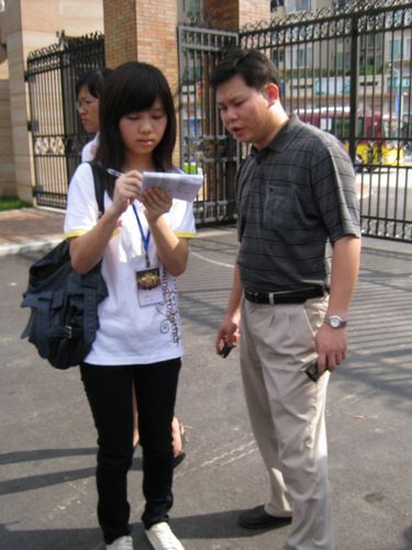需要家长接送的孩子大多数是低年级的学生,生性好动活泼的他们一见到家长便直冲向前,“小老师”们只得“穷追不舍”,为他们做完登记之后才让家长接走。由于多种原因,很多家长并未能准时到达校门口接走孩子,学生焦急,“小老师”们也焦急,急忙打电话给家长问明情况。
