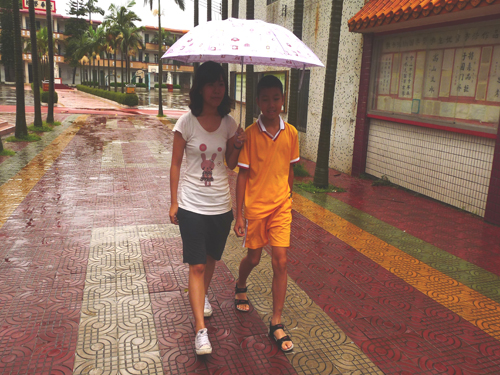 “灿都”对粤西沿海地区造成了巨大影响,却未能影响到斗门区井岸镇第三小学学生的上课热情。尽管狂风肆虐,大部分学生一大早便来到学校门口等待上课。但鉴于电视台已发出橙色警报,校方和服务队果断地决定停课一天。义教组的成员认真负责地让已到学校的学生回家并让他们到家后打电话回校确保安全。此外,服务队成员们还给未到校的学生的家长发出了停课通知,告知其停课原因,并请家长确保学生的安全。突如其来的台风,临时决定停课,考验了服务队员的应急能力并体现了服务队对学生安全毫不马虎的负责任态度。
