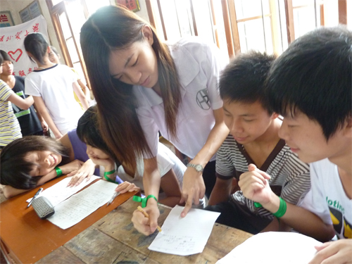 本网讯 7月22日下午三点半,广东外语外贸大学管理学院新丰二中服务分队的三支队伍在二中的多功能教室举行英语诗歌朗诵大赛。下午三点,各队伍陆续到达,在一番准备后,开展了三下乡以来第一次大型学生活动。