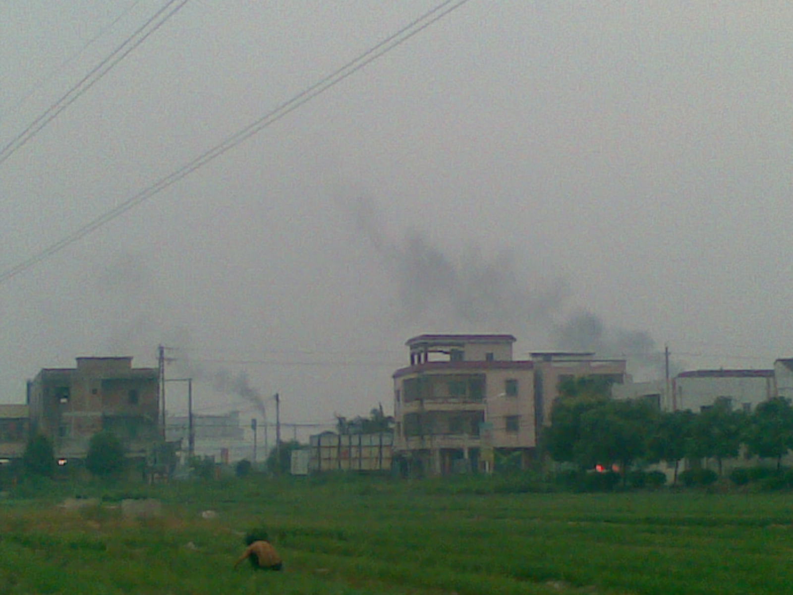 傍晚时分,随风飘起滚滚黑烟