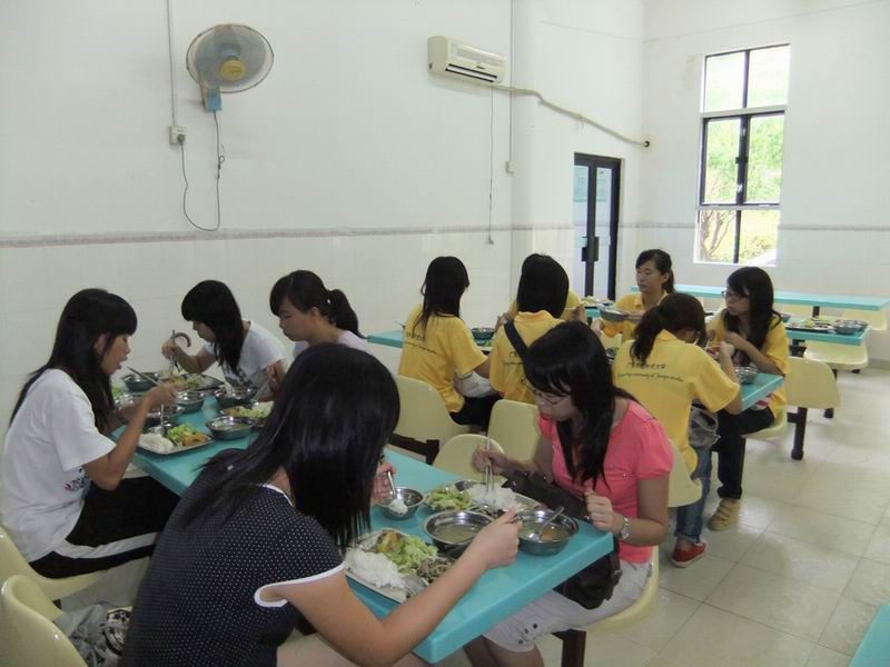 中午,考察团与“梦不落”队伍队员一起在食堂吃午饭,他们深切关心队员的生活情况,并表明他们是来帮助队员们解决问题的。