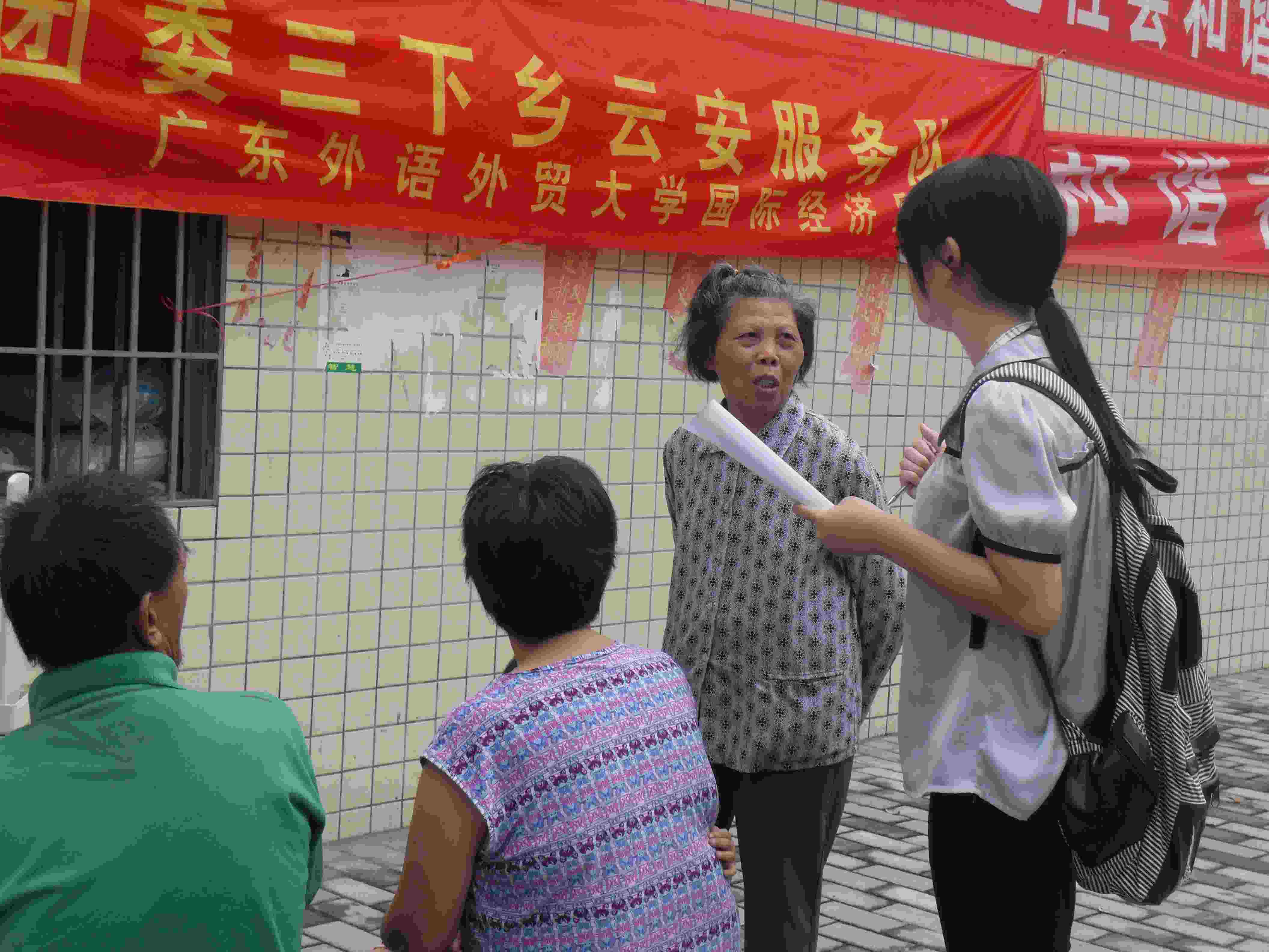 此外,我们调研组的组员也乘胜追击,在这镇民聚集的地方进行了调研,并取得一定成效。
