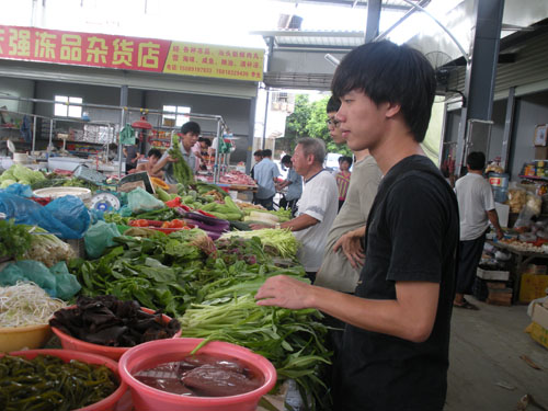 后勤组的队员一大早就到市场买菜