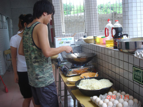 本网讯 7月21日,今天是我们三下乡服务的第三天,所有情况都基本稳定下来了,各组都有条不紊地开展自己的工作。在各组的紧密合作下,我们的活动得到了城东中学的老师和同学们的一致好评。作为一个整体,少了一组的配合我们的活动都不可能成功地开展,今天我们将对后勤组进行大揭密,我们美味的饭菜背后的汗水与付出。