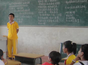 21号早上,参加我们情谊乡畔快乐暑假的学生们准时到达学校,给我们服务队的同学留下了深刻的印象。60多名来自不同班级的学生很快就打成一片,并由新推选出来的班长整好队伍,带队进场,进行了一个简单的开学典礼。