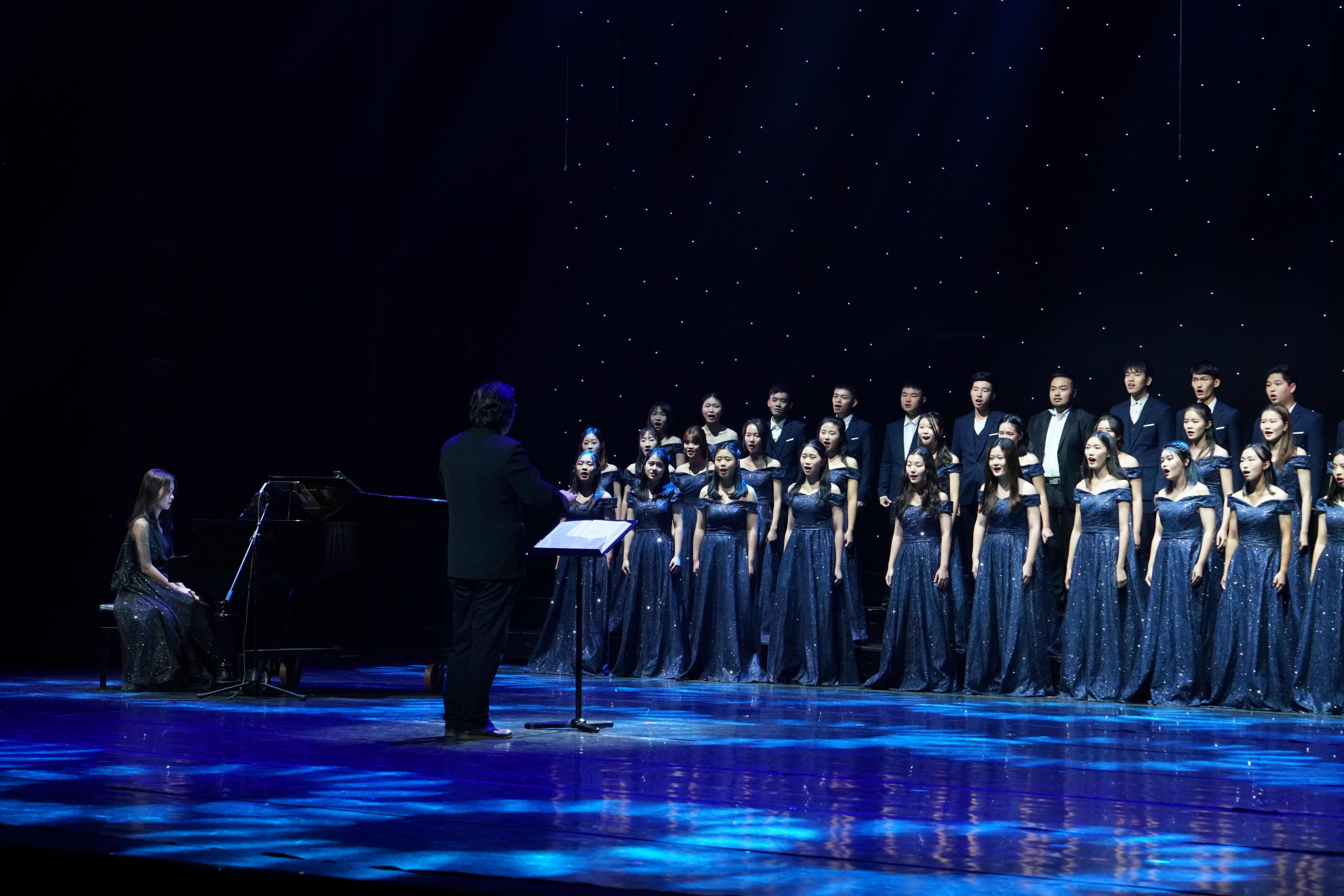 我校学生合唱团由非专业学生组成,在校团委指导下,利用业余时间,经过半年的准备,在两场高雅艺术进校园的专场巡演中,同学们演唱了《黄水谣》、《月光光》、《雪绒花》、《卖花生》等12首中外名曲。歌声婉转动听,带领观众完成了一次从细数美好回忆,到享受当下人生,再到对未来寄予希望和祝福的心灵沉淀之旅。