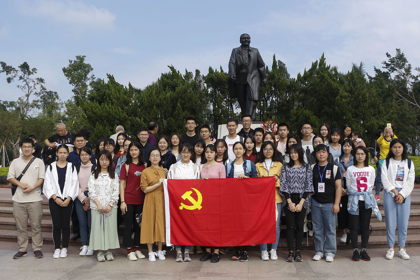 师生在邓小平雕像前合影留念