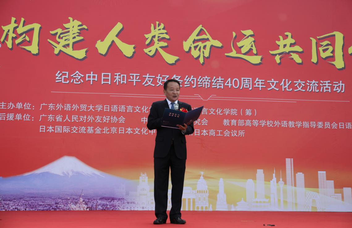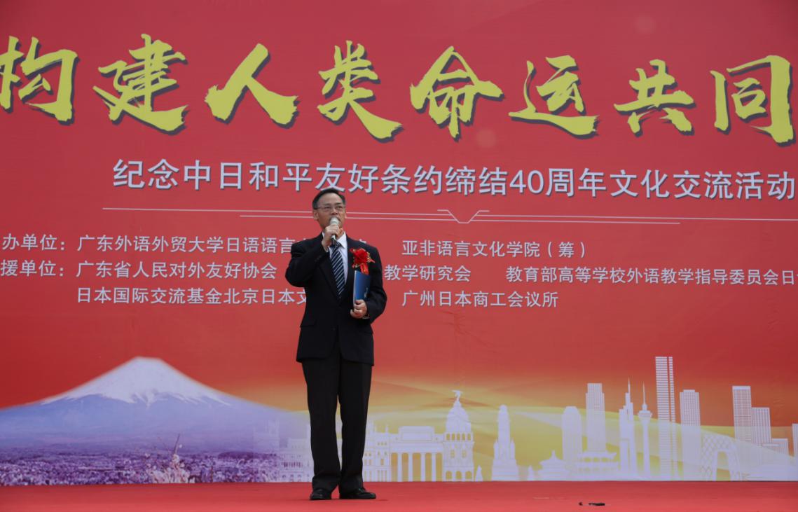 24日,“构建人类命运共同体”——纪念中日和平友好条约缔结40周年文化交流节在我校举行。我校副校长陈林汉、广东省人民对外友好协会副会长欧阳江旋、日本驻广州总领事馆副领事大圣寺利幸出席开幕式并致辞。省友协副会长欧阳江旋在致辞中表示,在中日和平友好条约缔结40周年之际,举办这样的纪念活动很有意义,通过文化搭台,借助文化的力量,可以让更多的人了解日本,加深两国人民之间的感情。