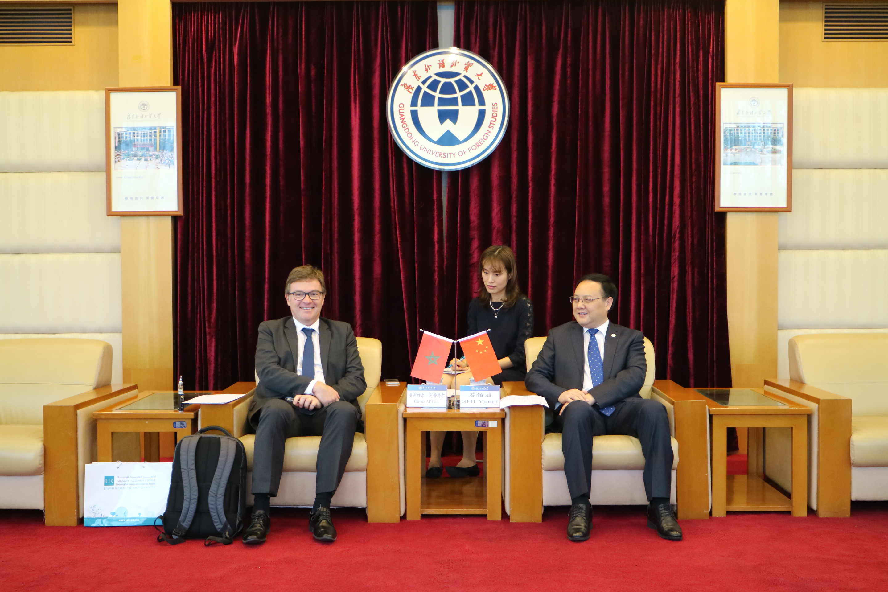 石佑启向代表团成员表示欢迎并简要介绍了我校非洲研究中心、商学院及经贸学院的情况。他指出,奥利维尔·阿普特尔曾来访我校,并与我校建立了良好的友谊与合作关系,希望此次奥利维尔·阿普特尔的来访,能够进一步促进我校与拉巴特商学院在学生交换、教师互派、合作研究等方面的交流与合作。