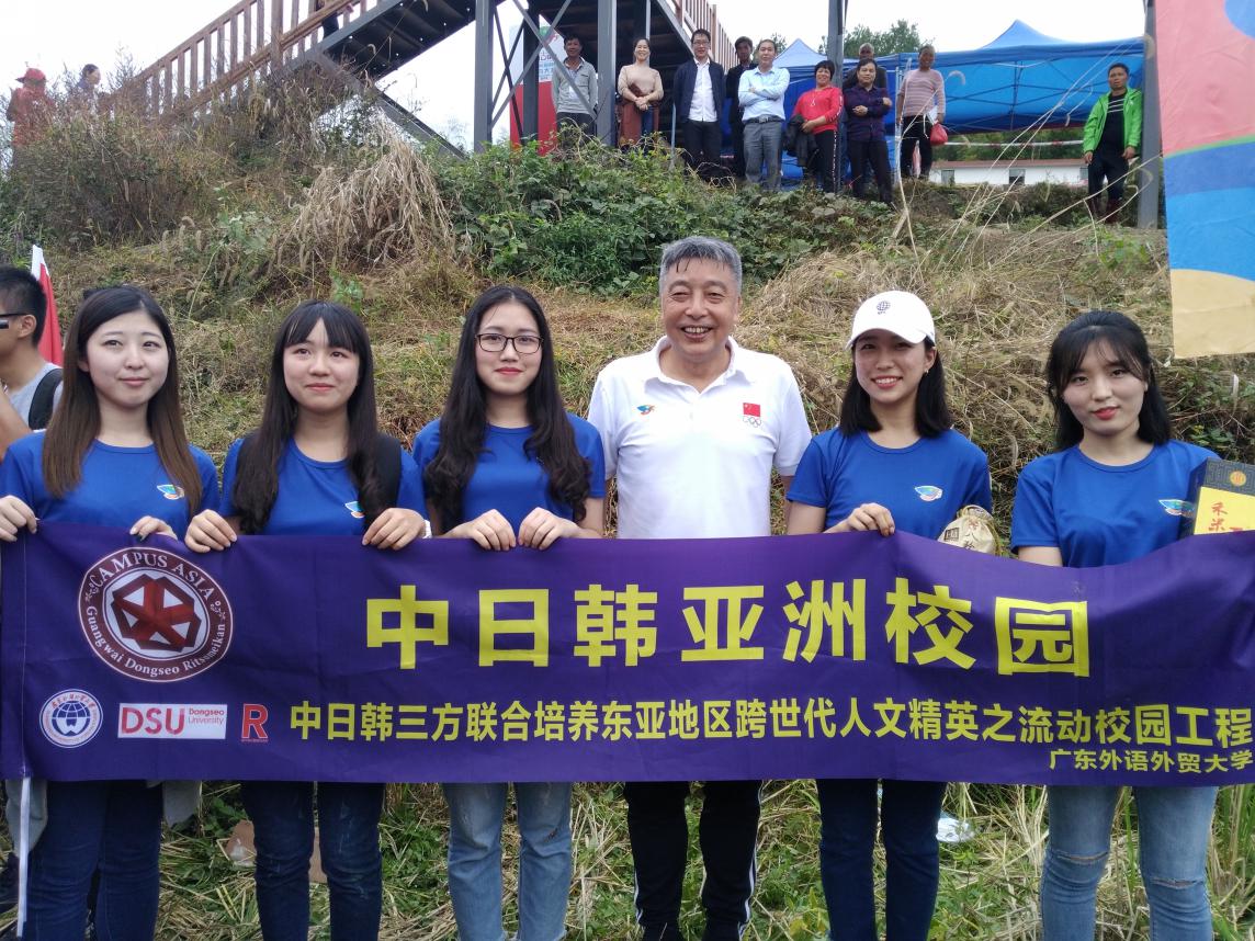 本网讯 11月4日上午,我校亚洲校园部分中日韩学生以体验组选手的身份参加了梅州市平远县八尺镇角坑村举行的南粤古驿道定向大赛。广东省人民政府副省长许瑞生出席开幕式并为大赛鸣锣开赛。他勉励我校亚洲校园的中日韩学子努力学习,加强运动,以丰富的知识、充盈的智慧和健康的体魄为构建人类命运共同体作出贡献。