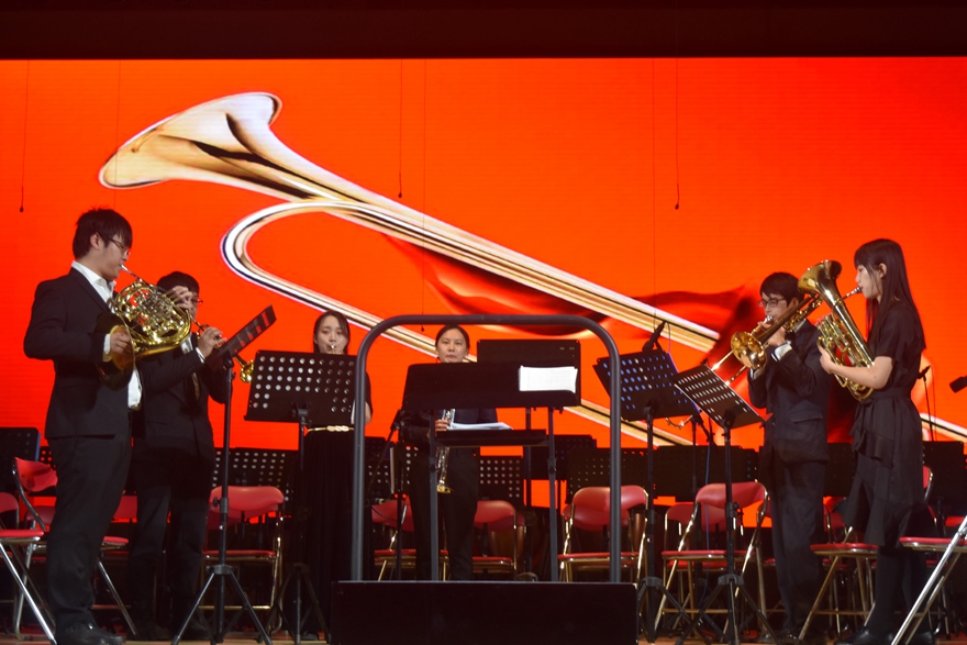 本网讯 12月5日,2020年新年音乐会在云山会堂举行。我校学生管弦乐团倾情演出,现任广州爱乐交响乐团首席、青年小提琴演奏家刘颖聪,我校校友、星海学院研究生邱妙霞,校学生合唱团受邀表演。本次新年音乐会的主题为“悠扬乐遐想·凤鸣国辉煌”,奏响2020的新希望,奏响对祖国的美好祝福。