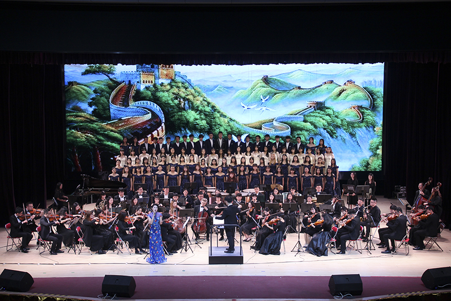 最后一曲《祖国颂》,邱妙霞以一袭中国风蓝裙现身,她以饱满悠扬的歌声携手校管弦乐团、校合唱团在2020年全面建成小康社会和我校五十五周年校庆之际,祝福祖国繁荣富强,我校事业蒸蒸日上。在表演者悠扬声韵和观众对2020年的美好憧憬中,本次新年音乐会正式落下帷幕。
