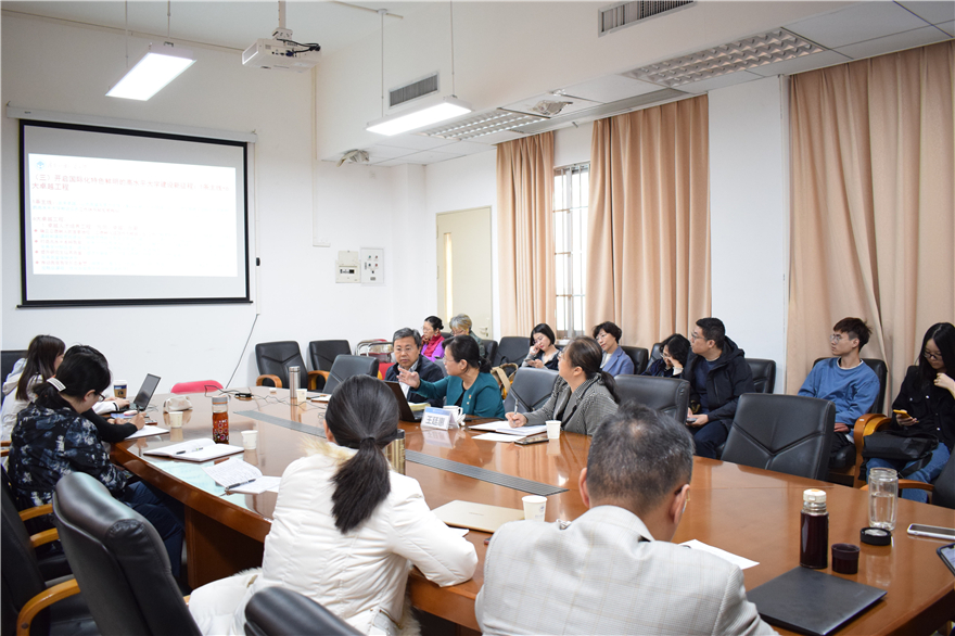 王廷惠表示,要以“六大卓越工程”为引领,建设卓越大学。学院是大学的基石,办大学就是要把学院办好。新闻学院要以“强立德树人方向、强高质量组织、强使命担当”为指引,对照对比对标对表“学校六大卓越工程,落实落细落准落定,启动编制学院建设与发展的“十四五”规划,建设卓越大学的卓越学院。在“卓越人才引领工程”方面,新闻学院要注重“课程思政”的建设,要先行谋划、先行培育、先行孵化、先行先动,着力建设一批示范专业和示范课程,培养一批“马克思主义新闻观统领下的卓越新闻传播人才”。在“卓越学科引领工程”方面,新闻学院要主动对标同类高水平学科,充分依托学校国际化办学特色,加快形成或深化拓展具有核心竞争力的主流方向;要加强新闻学科建设,主动谋划交叉融合,培育新的学科增长点。