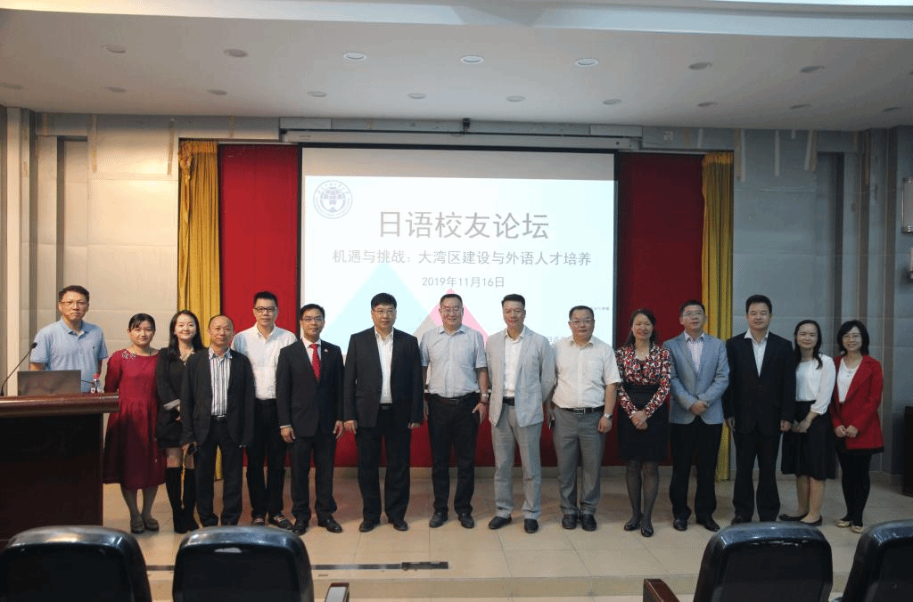 本网讯 11月16日下午,日语学院、亚非学院(筹)在七教水上报告厅成功举办了以“机遇与挑战:大湾区建设与外语人才培养”为主题的日语校友论坛,85级校友周云汉、86级校友蓝岸和麦叶青分别围绕主题进行主旨演讲,原广东外语外贸大学副校长顾也力教授作为特邀嘉宾参加论坛,学院近百名师生参加。