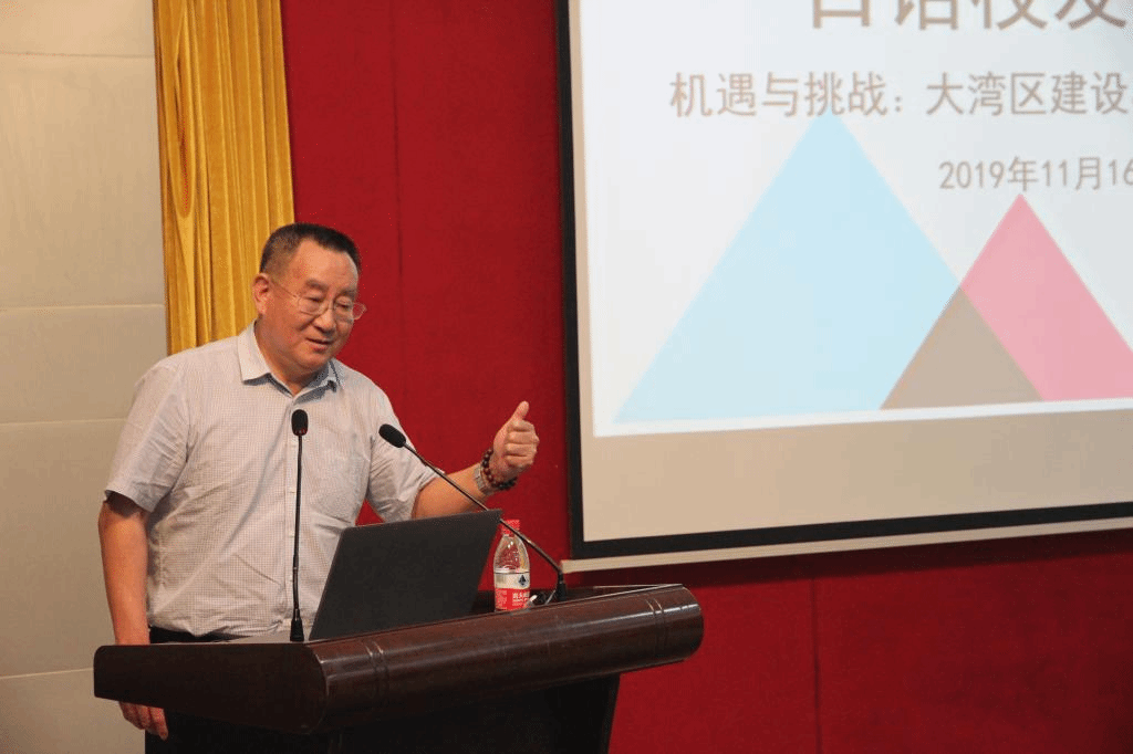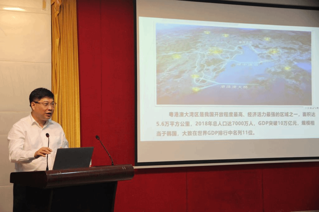 现任东莞市以纯集团有限公司副董事长的86级校友蓝岸先生分析了粤港澳大湾区的发展状况及发展前景,指出大湾区的发展意味着社会对高层次应用型人才的需求更大、要求更高。他介绍了他所在的东莞市以纯集团有限公司“以纯”品牌的创始人即董事长郭东林先生的创业经历,以郭先生“一生只做一件事”专注于服装事业为例,向大家阐述了专注之于发展的重要意义——“人人都可以成为人才,关键在于坚持不懈的努力”。在报告中,蓝岸先生也表达了对我院培养外向型人才的期待,鼓舞同学们不断努力。