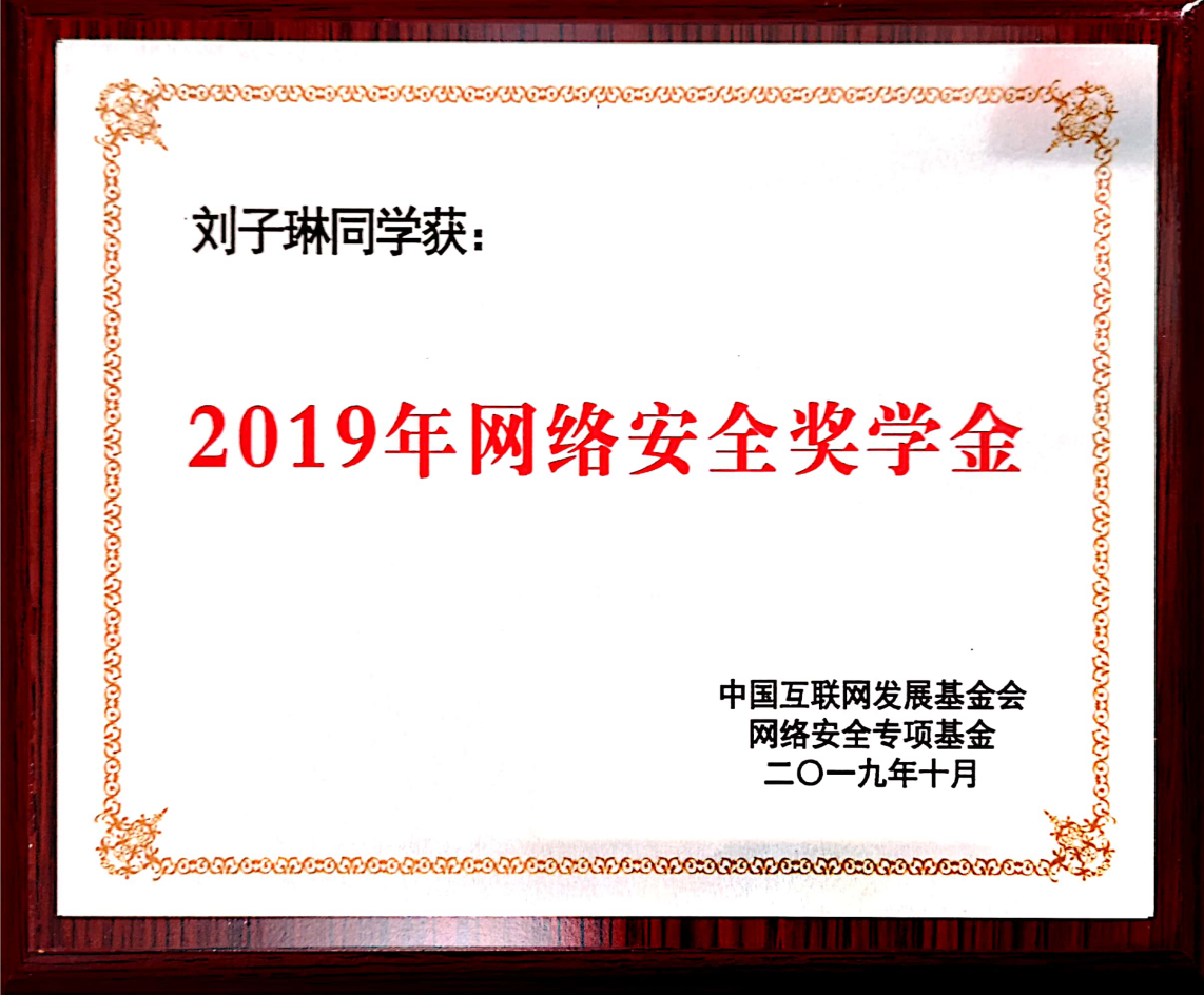 本网讯 近日,我校信息学院2017级网络空间安全专业本科生刘子琳和李敬煌荣获国家“网络安全奖学金”,这是我校学子首次获得该项网络空间安全学科在国家层面面向在读本硕博学生的最高奖项。