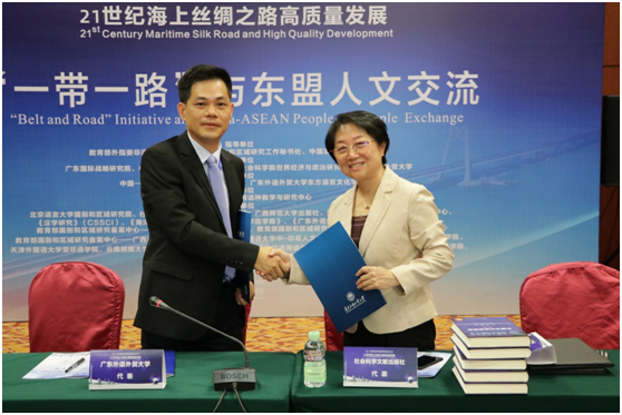 论坛还同期举办了广东外语外贸大学亚非语言文学二级学科博士点揭牌仪式、《东盟文化发展报告(2019)》蓝皮书发布会、广东外语外贸大学东方语言文化学院与社科文献出版社、广西师范大学出版社学术合作协议签约仪式等活动。