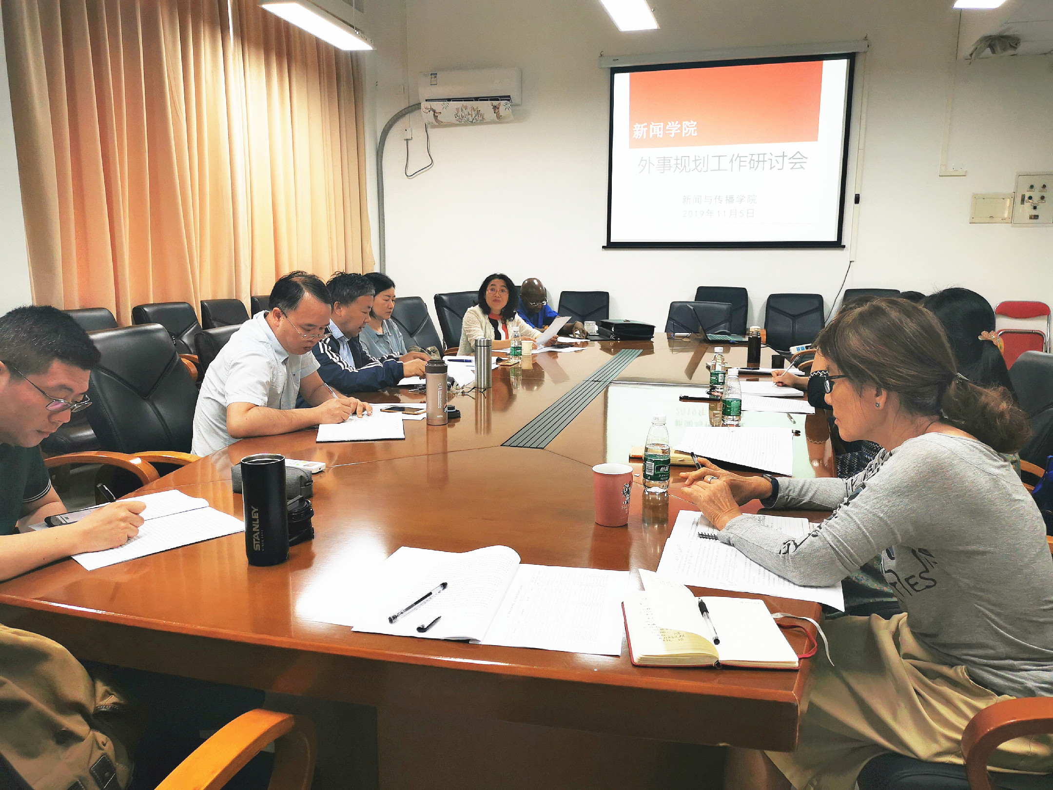 新闻学院党政领导班子有关成员、学院外事工作小组全体成员、学院外教及相关教师参加会议。