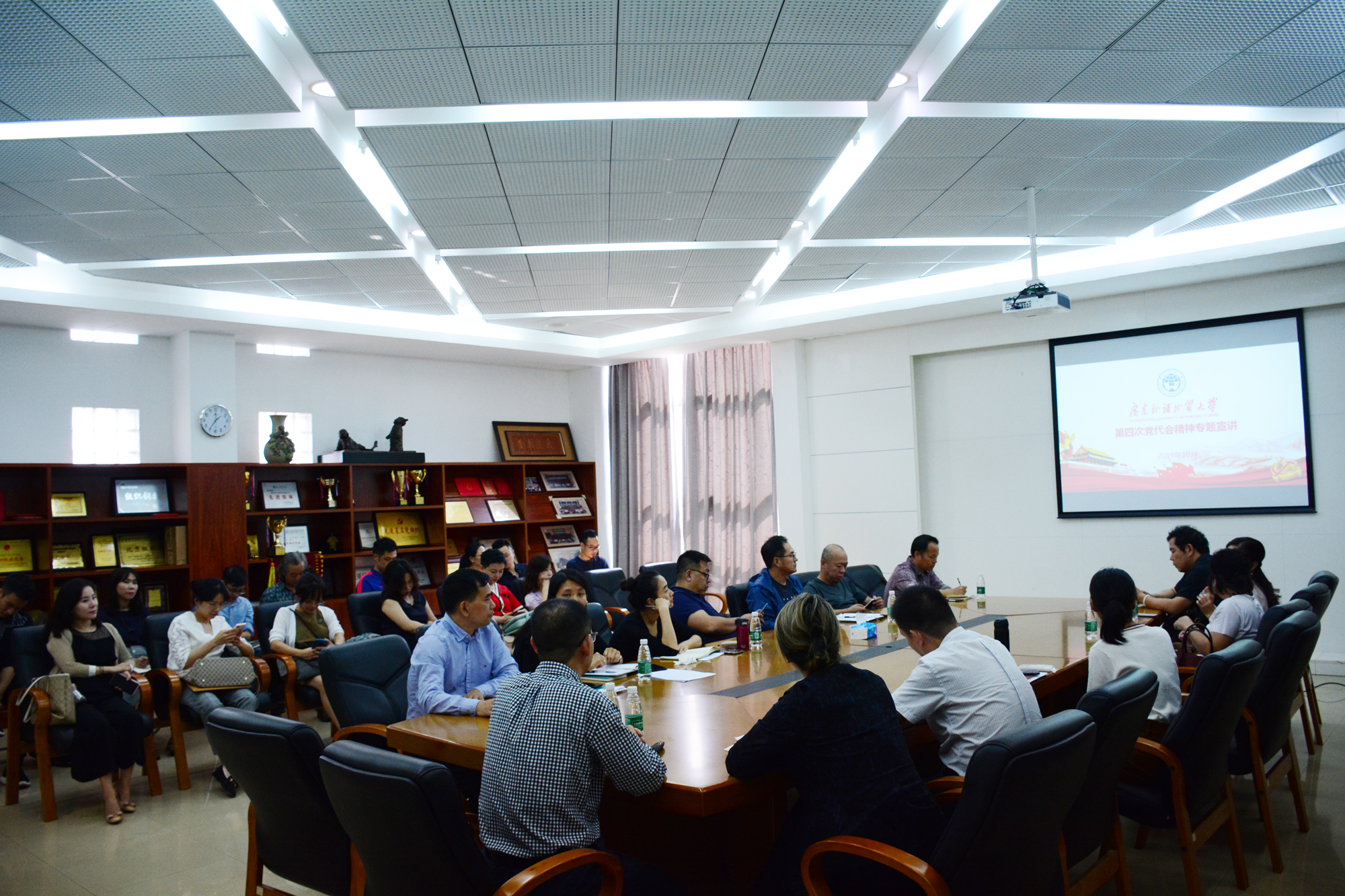 本网讯 11月4日下午,校党委委员、粤港澳大湾区研究院院长申明浩为艺术学院师生宣讲党代会精神,学院全体教职工及学生代表参加。