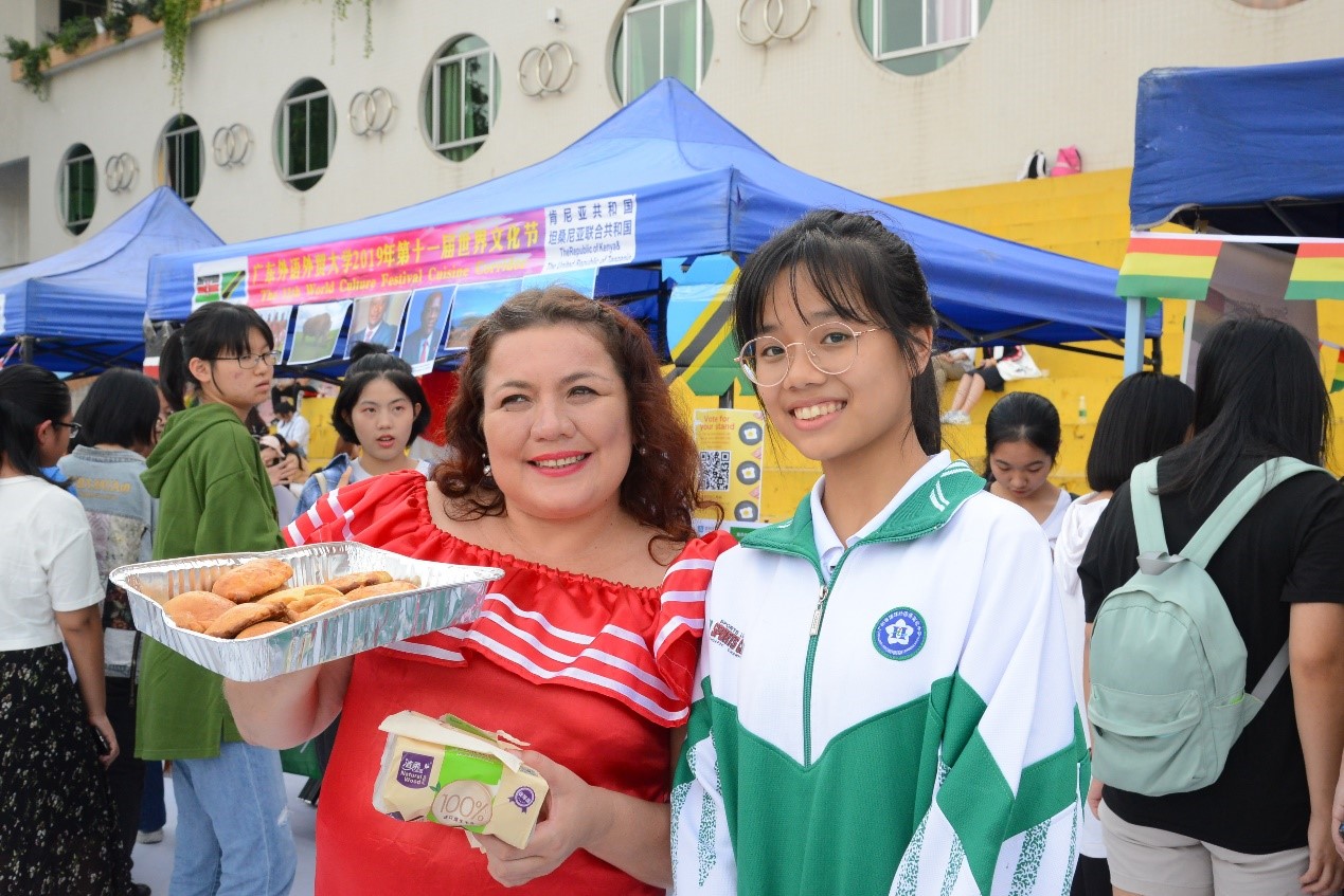 毕业于海珠实验外国语学校、现就读于我校英文学院的黄睿诗、陈如钰两位同学首先向师弟师妹们介绍了大学生活和高考备战经验。海珠外国语实验学校的师生尽情体验各国文化,品尝各国美食,感受异域风情,并与参加文化节的外国友人交流在学习生活和文化节体验方面的感受。