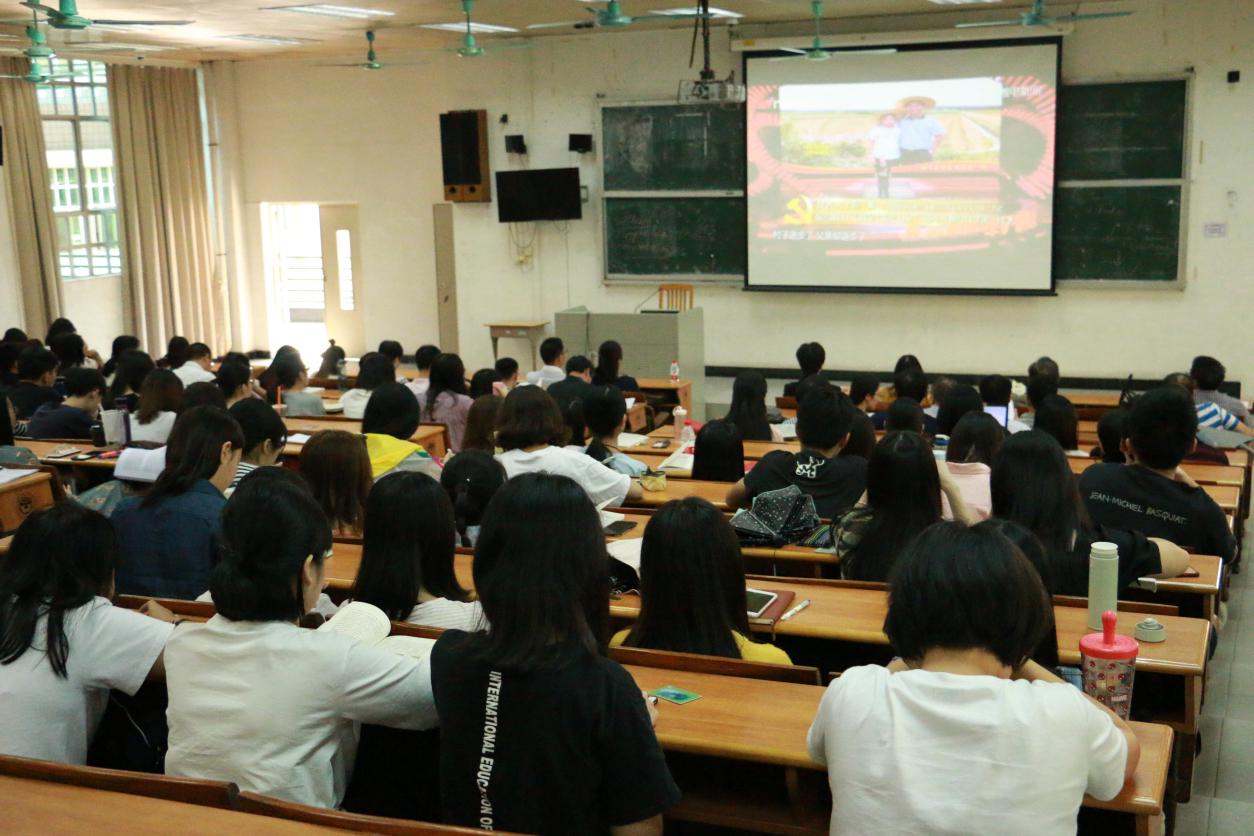 本网讯 10月17日下午,中文学院在二教217室组织师生观看“不忘初心、牢记使命”主题教育先进事迹报告会,全院教职工、学生党员以及学生重点发展对象和入党积极分子约200人参加。