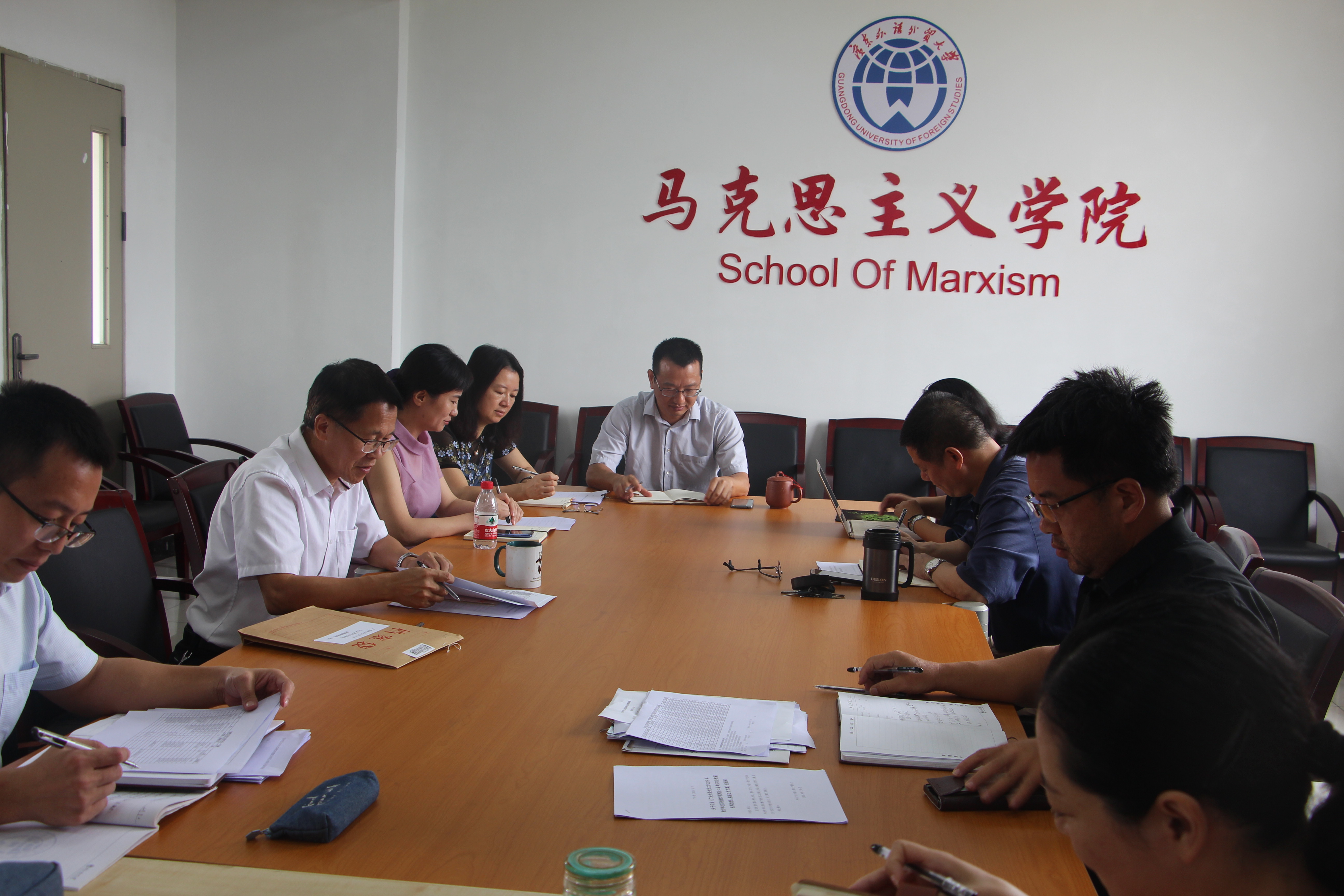 谢迪斌在报告中指出,马院今后要着重在教改、科研、时间管理、政治安全方面做出更大努力,把握学习中央和广东省印发的各项文件精神,用学术研究来支撑思政课教学,做到知识性和价值性相统一。卢海清提出了几点建议:建立教师“一对一”的帮扶制度,以老带新,提高年轻教师的科研和授课能力;建设学院党员活动室和社会主义核心价值观文化长廊,全面提升学院的文化建设;加强对马克思主义的宣讲和学院网站建设。院长助理曾荣解读了马克思主义中国化进程与青年学生使命担当“ 精品思政课程的实施方案。