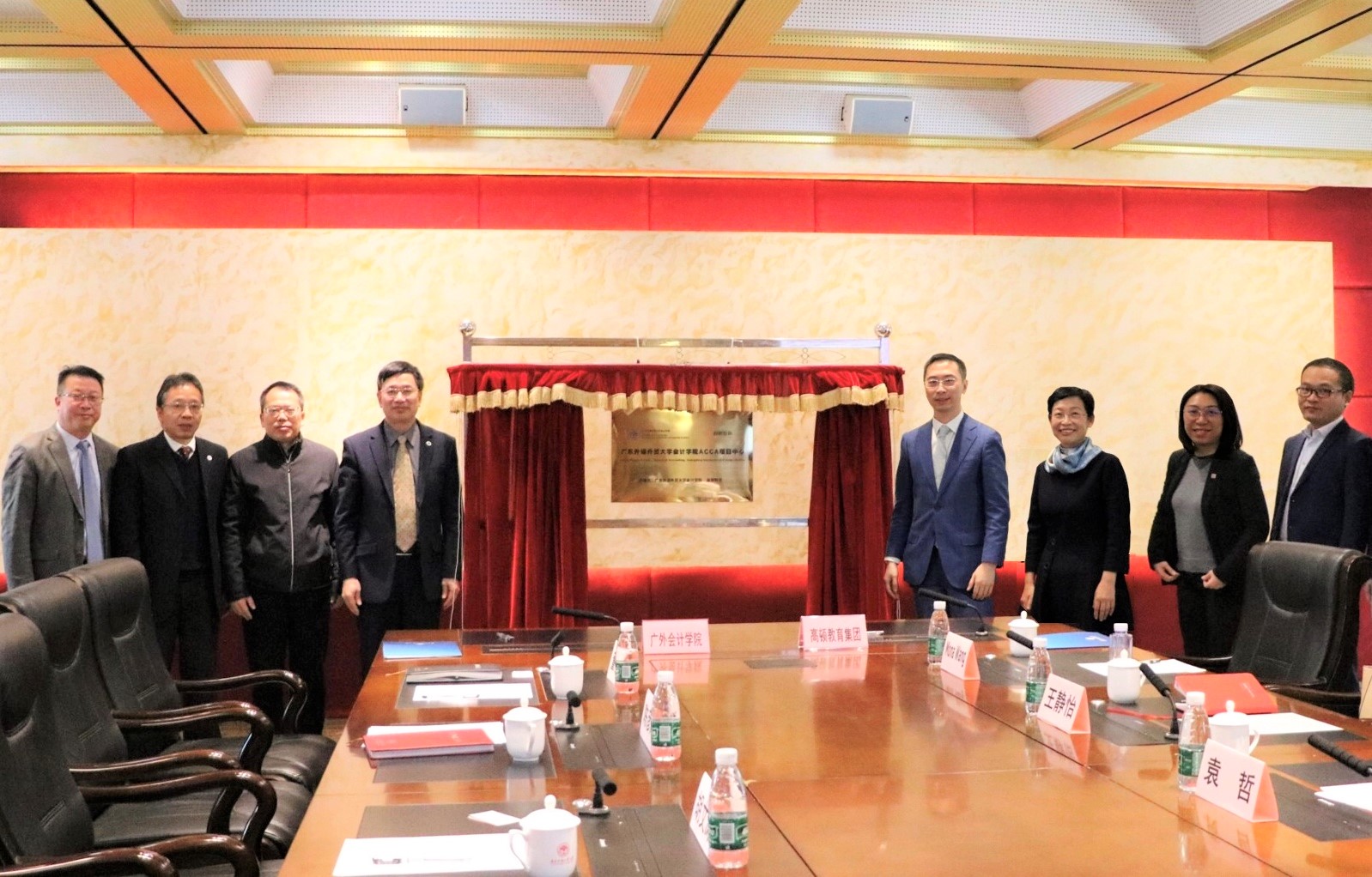 本网讯 12月9日,我校会计学院与高顿教育ACCA项目战略合作发布暨揭牌仪式在北校办公楼第一会议室举行。我校副校长何传添,高顿集团副总裁李珂,ACCA华南区首席代表袁哲出席仪式。