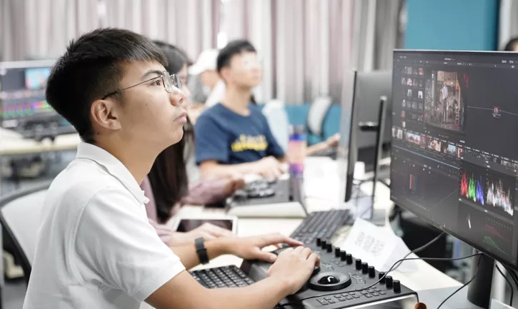 袁键聪选择这份工作并不让人意外。大一下学期,在院团学资讯部的他,参加了模拟新闻发布会。当时,他刚开始学习视频制作。大二学年,他加入了新传直播工作室,学到了许多有用的理论知识,也接触到了许多实操的机会。同时,大三下学期,学院开设了达芬奇工作坊,这为他现在的工作奠定了坚实的基础。“可能是因为有本科参与过相关的活动,我才能有今天的这份工作,”袁键聪感慨地说,“要感谢我们学院的老师尽心尽力为同学们打造良好的软硬件基础和实践环境。”