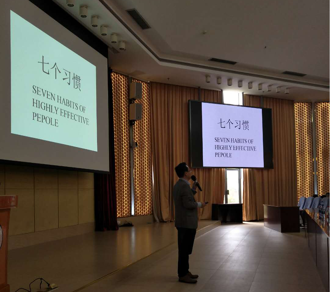 吴珑作题为《高效能人士的七个习惯》的演讲,提出来“以终为始”、“重要的事情先安排”、“从双赢出发”、“先理解别人”、“协同合作”、“综合统效”、“不断更新”的7个习惯,望同学们能学以致用,从知识、技能、目标三个方面改进自己。