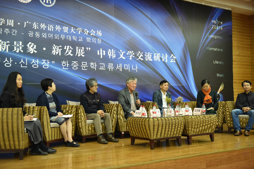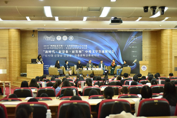 本网讯 近日,“2019年广州国际文学周”——“新时代·新景象·新发展”中韩文学交流研讨会在我校北校区图书馆报告厅举办。研讨会围绕“新时代以来中韩文学发展的新现象、新特征和新趋势”和“新时代以来中韩文学作品互译出版的现状和展望”两个议题展开讨论。来自中韩两方的作家、诗人、学者,我校副校长焦方太出席会议。