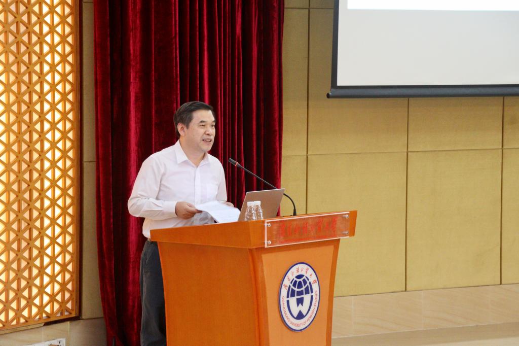 会上,经贸学院院长张建武代表学院对2020级创新班新生的到来表示欢迎,并提出了四点要求:一是“学会知识”,希望同学们热爱专业、投入热情、苦练本领才能学有所成;二是“学会学习”,勉励大家甘坐“冷板凳”、肯下“苦功夫”、才能终成“大气候”;三是“学会创新”,希望同学们以前辈为榜样,勇于实践、敢于创新;四是“学会担当”,希望同学们通过在广外的学习和锻炼,练就国际视野、培养家国情怀、把握时代脉搏。