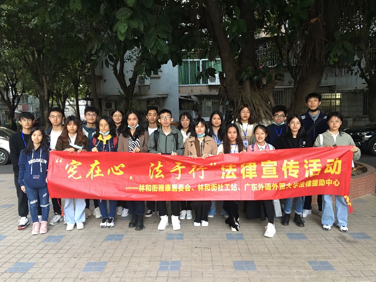 12月3日,我校法律援助中心(以下简称“法援”)与广州市天河区长兴街社工服务站、天河区嘉福学校、林和街雅康居委会、林和街社工站等单位合作,以《宪法》、《婚姻法》、《未成年人保护法》等为内容,开展了主题为“以宪法之名,伴青春同行”和“宪在心法于行”的宪法日普法活动,为居民和在校学生提供现场法律咨询服务。本次活动的形式丰富多样,既有法律咨询服务,又有派发学习资料等环节,大家在寓教于乐的普法活动中学习到了与自己息息相关的法律知识。