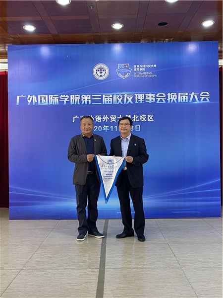 陈林汉向国际学院院长、第三届校友理事会会长梁学宏颁发聘书、颁授锦旗。梁学宏在讲话中回顾了学院办学历程,殷切期望校友们以国家2035年远景目标为指引,紧跟国家发展的大发展、大战略,在百年未有之大变局中抓住机遇建功立业。他衷心感谢校友们的支持与付出,期望校友会能够不断壮大,吸引更多的校友积极参与,发挥国际学院的特有优势成为资源共享、互惠共赢的重要平台,为学院建设添砖加瓦。同时,他提出国院的办学理念,与校友共同探讨,共商学院发展大计。大会审议通过了国际学院第三届校友理事会换届结果。梁学宏为新一届理事会成员逐一颁发了聘书。