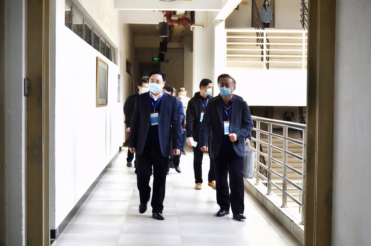 考试期间,校长石佑启、副校长何传添巡视考场。石佑启详细了解了试卷安全保密、疫情防控、考场设置、考生数量、服务保障等各方面情况,他对我校今年硕士研究生入学考试的组织工作给予了充分肯定,并要求要严格落实疫情防控措施,全力做到管理到位、监督到位、服务到位,确保考试平安顺利。石佑启表示,全国硕士研究生招生考试涉及的环节多,组织任务重,要统筹做好疫情防控和研考组织工作,确保考试安全规范,维护考试的公平公正。