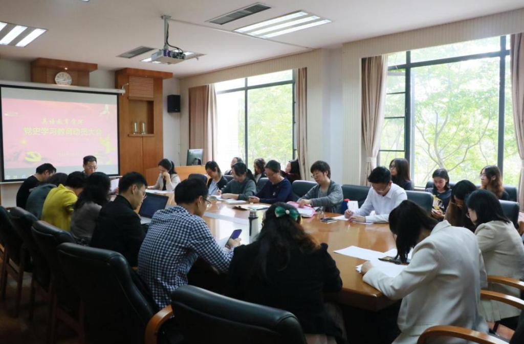 本网讯 百年党史波澜壮阔,学史明志奋力前行。近日,我校英语教育学院在南校区院系楼245会议室召开党史学习教育动员大会,学院院长、党委委员董金伟以“学党史、悟思想、办实事、开新局”为主题作动员讲话。英语教育学院党委委员、各师生党支部书记及委员、组织员、辅导员参加会议,会议由学院党委副书记骆银花主持。