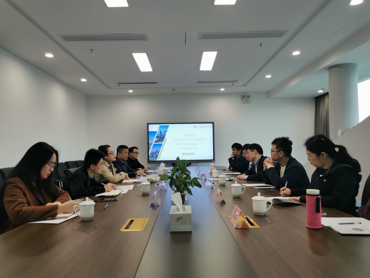 本网讯 为更好地开展党史学习教育,打造具有金融特色的党建品牌,进一步提升金融学院对外交流及社会服务水平,3月23日,金融学院党委书记徐昶斌带队赴广州金融服务发展中心(以下简称“广金服”)开展调研交流。