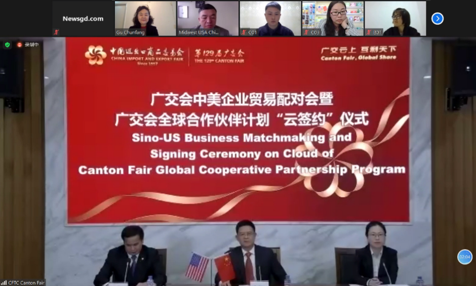 本网讯 4月16日,第129届广交会中美企业贸易配对会暨广交会全球合作伙伴计划“云签约”仪式在线上举行,我校翻译学院“当代中国(粤港澳大湾区)故事译写与传播”项目组师生参与该项活动,协助南方英文网完成对美国中西部对华商会会长陈辽瑞的线上采访和英文新闻报道等相关工作。
