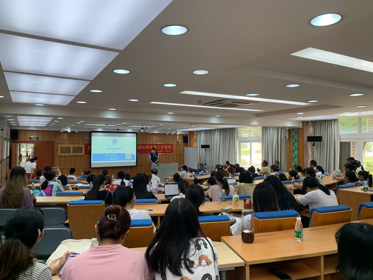 在讲座中,同学们学习了《广州市生活垃圾分类管理条例》,通过视频播放、互动提问等多种方式,让同学们了解垃圾分类的概念、意义、具体方法。活动旨在让师生了解垃圾分类的相关知识,增强师生的垃圾分类意识,纠正垃圾乱扔的不良行为,树立绿色低碳、环保健康的生活理念。