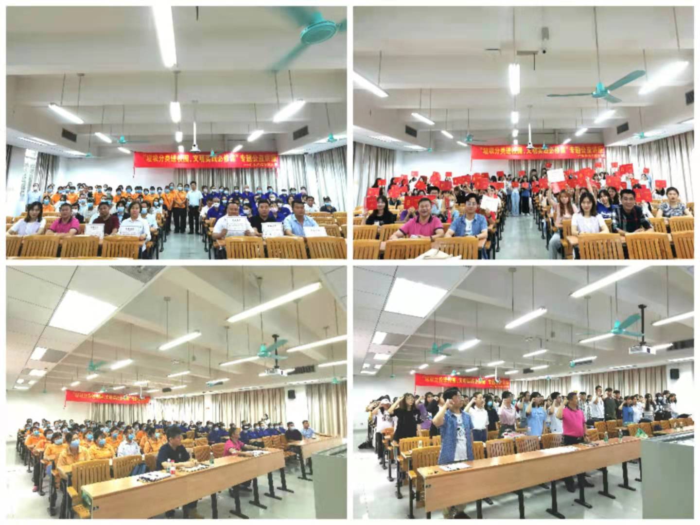 培训会结束后,以“爱卫月”活动为契机,开展了“垃圾分类我先行”的志愿服务,让学生以饱满的热情共同参与到垃圾分类的实践中去。本次垃圾分类培训活动不仅让同学们知道了垃圾分类的益处,且有利于树立环保意识,促进资源的重复利用,减少垃圾对环境造成的危害。