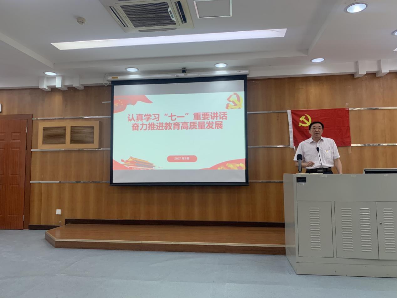 本网讯 为进一步学习贯彻习近平总书记“七一”重要讲话精神,持续深入推动党史学习教育走深走实,9月10日下午,商学院召开学习习近平总书记“七一”重要讲话精神宣讲会,校党委副书记李云明以“认真学习习近平总书记‘七一’重要讲话精神,奋力推进教育高质量发展”为主题进行宣讲。商学院党政领导班子成员、师生党员代表参加宣讲会。