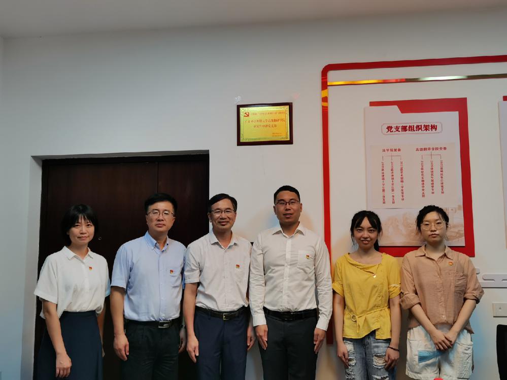 本网讯 9月16日,我校全国“百个研究生样板党支部”揭牌仪式在我校知识城校区举行。校党委常委、副校长何传添为研究生口译党支部揭牌,并参加支部党史学习教育专题组织生活会,进行座谈交流。