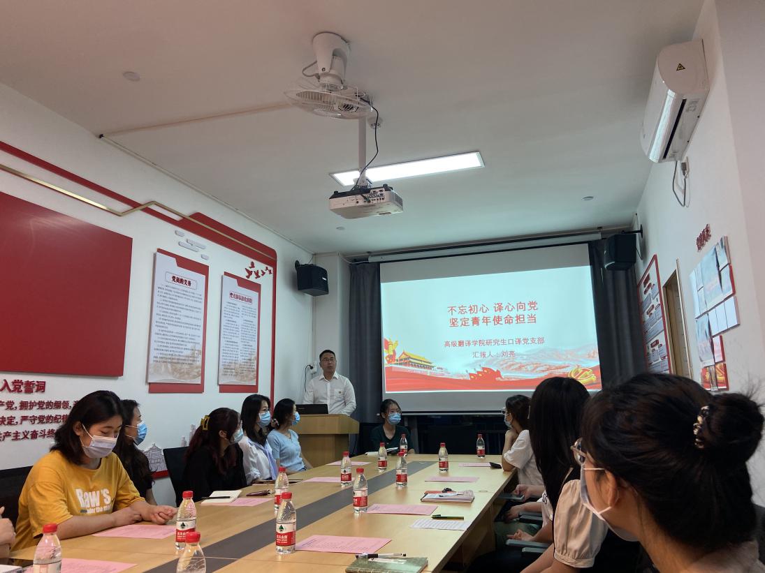揭牌仪式后,研究生口译党支部召开党史学习教育专题组织生活会。研究生口译党支部书记刘亮代表党支部委员会向党员报告半年来党支部工作情况,通报党支部委员会检视问题情况。党支部党员逐一发言,围绕党史学习教育情况讲收获提高,讲差距不足,开展自我批评和批评,并就习近平总书记“七一”重要讲话、《习近平新时代中国特色社会主义思想学习问答》等内容分享交流学习成果。支部党员表示将传承红色基因,赓续红色血脉,抓好专业学习,努力成才。