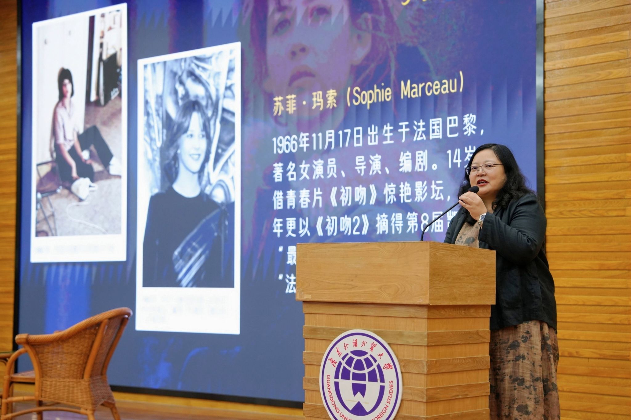 图书馆(档案馆)馆长陈红霞主持活动开场,介绍了苏菲·玛索不仅是享誉全球的演员,更是跨界文学创作者。1996年,苏菲·玛索推出首部作品《说谎的女人》,2023年出版《暗河》,2026年该书由花城出版社推出中译本。《暗河》出版后斩获法国2024年玛格丽特·德·纳瓦尔奖,其写作获得文学界高度认可。分享会围绕苏菲·玛索文学创作、《暗河》作品解读、法国女性主义写作发展三大核心内容展开,现场氛围热烈,师生参与度极高。