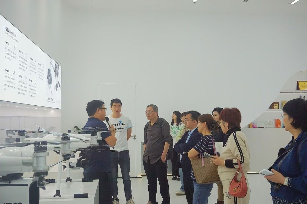 在亿航智能副总裁贺天星等人员的陪同下,专家们参观了亿航智能产品展厅,近距离观摩了全球首款获适航认证的无人驾驶载人航空EH216-S以及物流无人机、消防无人机等多功能、多场景的无人机产品矩阵。