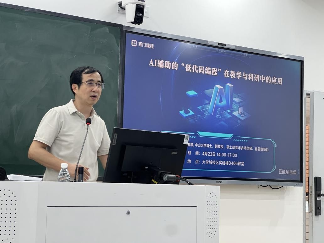 本网讯 4月23日,百门教师发展精品微课程《AI辅助的“低代码编程”在教学与科研中的应用》在我校大学城校区实验楼D座开讲,由我校信息科学与技术学院郑琪副教授主讲。