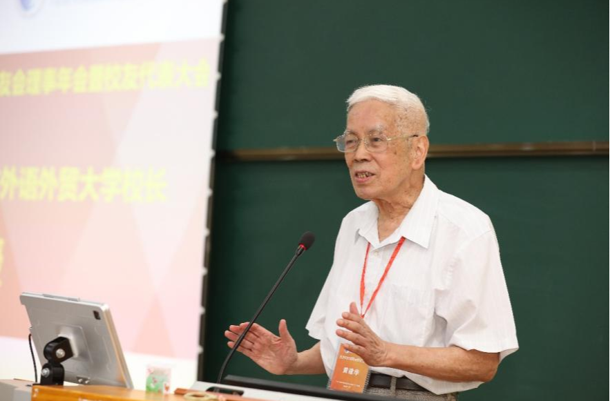 随后,西语学院校友会名誉会长、原广东外语外贸大学校长黄建华致辞。黄建华围绕“校友和校友”、“校友和校友会”、“校友和母校”三个方面展开,他深情回忆了在西语学院学习工作时光,充分肯定了西语学院校友会在校友信息沟通联络和助力校友事业发展方面的作用,对各届校友长期以来对母校发展的关心支持表示感谢。他表示,母校十分关心校友发展,以校友为荣,并寄望校友与母校共同发展,寄语校友建功立业、为母校增光,祝福各届校友友谊地久天长,祝愿校友会建设取得更多成效。
